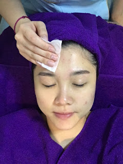 整個療程大約 75mins,首先會見見治療師,講比佢知我最 注重係咩問題,佢會先幫我做一次 專業皮膚分析,以後落妝、清潔麵部,再用保濕精華爽膚水令麵部即時保水。